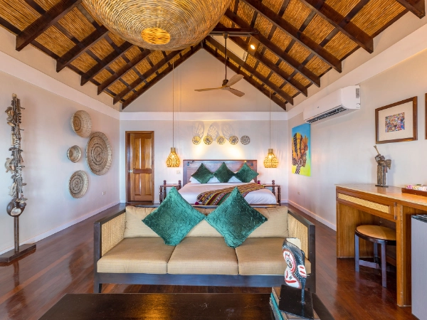 Patio, AC and ceiling fan, TV, Telephone, In-room safe, Mini-fridge, Coffee maker, Outdoor shower, Hammock.