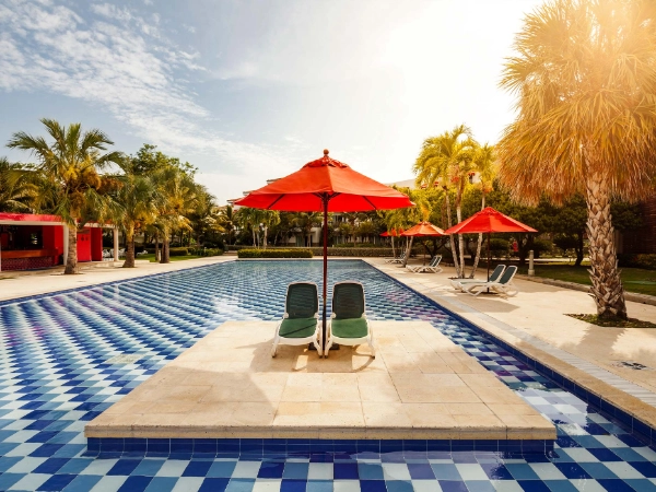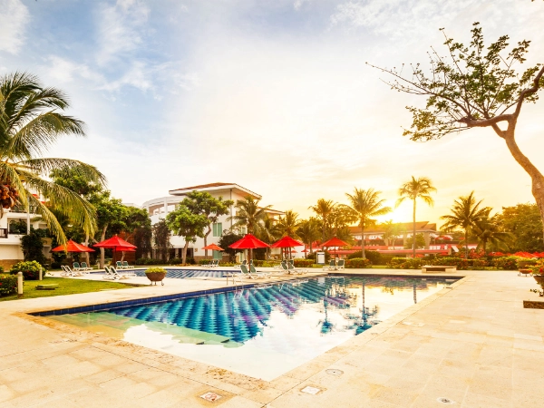 Nestled on a stunning peninsula approximately 75 minutes from Cartagena, the Decameron Barú,  offers a captivating escape from the everyday hustle and bustle. Surrounded by lush tropical forests, the resort's architecture harmonizes with its ecological setting, featuring access to several beautiful beaches, including Playa Blanca, renowned as one of the finest in the Colombian Caribbean.