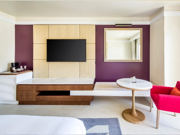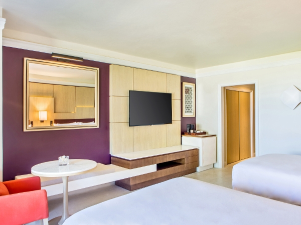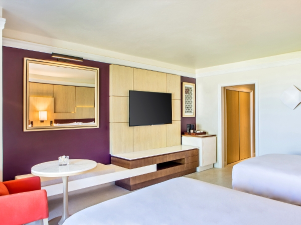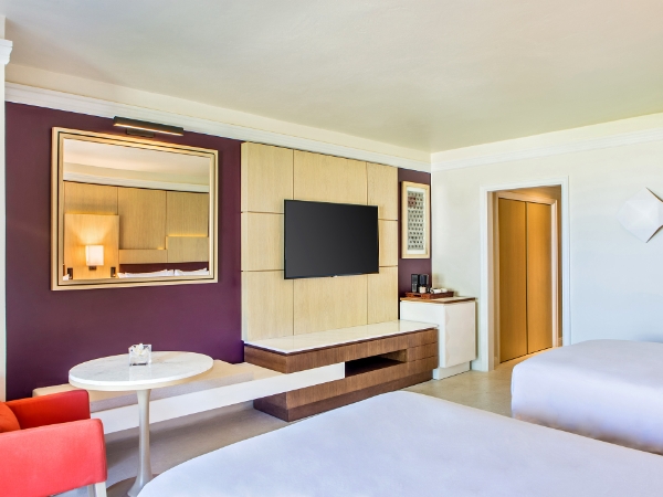 Balcony or terrace, AC and ceiling fan, TV, Telephone, Alarm clock, In-room safe, Iron, Mini-bar, Coffee maker, Phone charging station.