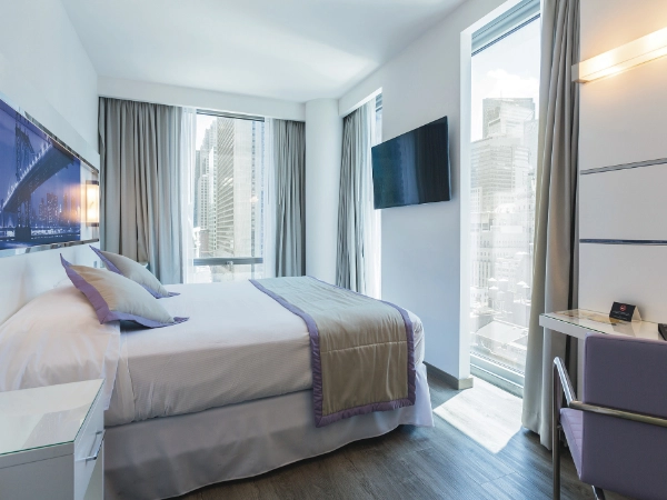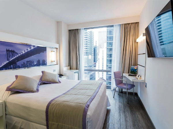 Hotel Riu Plaza New Your Times Square, situated in Manhattan in the renowned "Restaurant Row" surrounded by Broadway's most famous theaters and just steps from the iconic Times Square. The hotel is surrounded by emblematic sites such as Central Park, Rockefeller Center, the Empire State Building, Carnegie Hall and the luxury stores on Fifth Avenue.