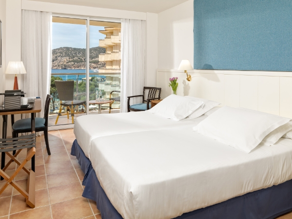 The H10 Blue Mar is located in Camp de Mar, between the prestigious port of Andratx and the well-known tourist town of Peguera. Protected by the Sierra de Tramuntana mountains, declared a World Heritage Site by UNESCO, Camp de Mar enjoys a privileged microclimate which, combined with a beautiful beach with crystal clear water and a select range of services, makes it one of the most idyllic natural landscapes in Majorca.