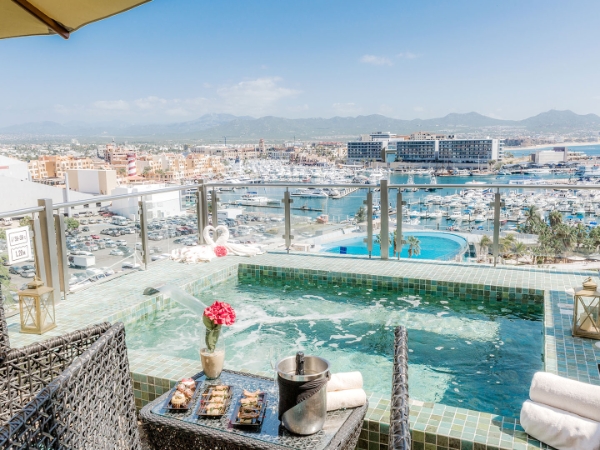 The name Finisterra means “End of the Earth”, and that’s what you’ll find at this breathtaking all inclusive resort. Sandos Finisterra is nestled on a clifftop at the very end of the Baja Peninsula. Situated just steps away from the excitement of downtown Cabo San Lucas and the Marina, Sandos Finisterra has captivating views of the Pacific Ocean on one side and panoramic vistas of the city, the Sea of Cortés and Marina on the other. Whether you're looking to party through the night or lounge the day away, this resort offers the perfect vacation.
