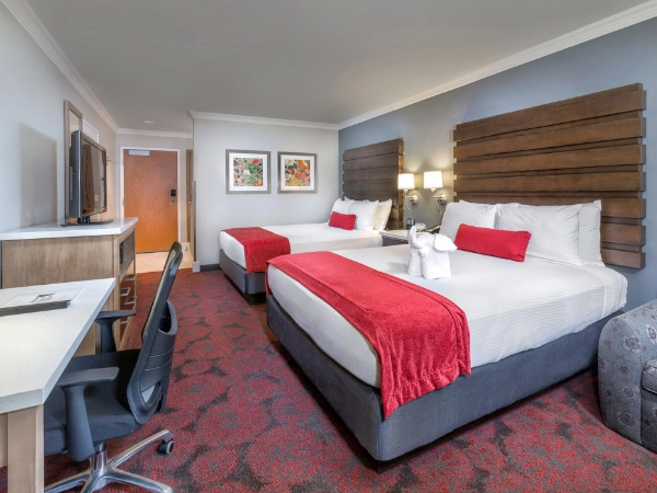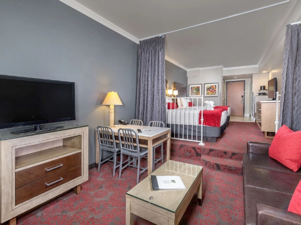 Experience a cozy atmosphere at Desert Palms Hotel & Suites, just a short walk from Disneyland® Resort. Indulge in our roomy guest accommodations following a day of exploring Disneyland and other exciting local sights. Recline under shaded areas by our heated outdoor pool, savor a complimentary hot breakfast every morning in our Oasis breakfast area, and keep in touch with loved ones using our complimentary Wi-Fi. Choose from a variety of suite options to find the ideal setup for your family's needs.