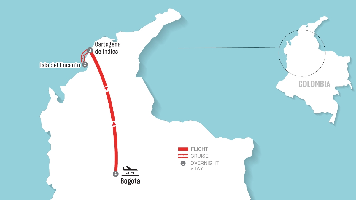 Embark on an immersive journey to Colombia's most iconic destinations, where every step reveals a new layer of history, culture and natural beauty. Begin your adventure in Bogotá, the bustling capital city nestled in the Andes. Explore the magic of the Old City in Cartagena de Indias along with its vibrant streets, and escape to the paradise of Isla del Encanto, where turquoise waters lap against pristine shores fringed with palm trees.
