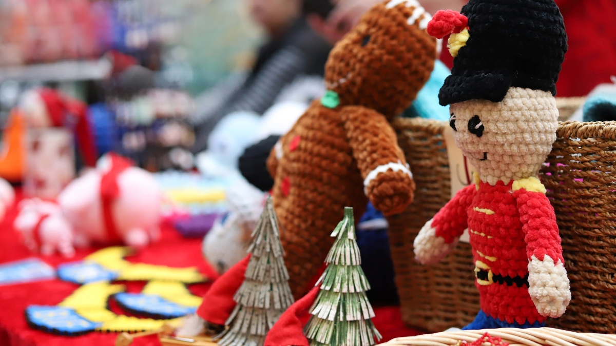 - Traditional red stalls, crafts and mulled wine.