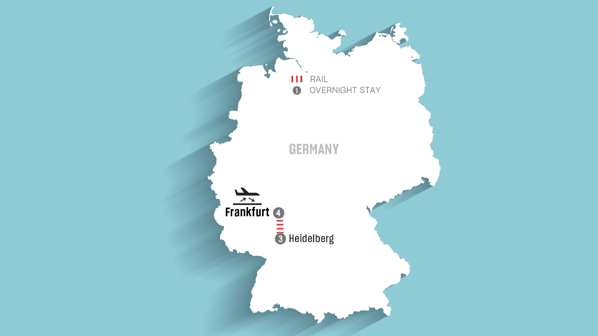 Make your own way to the train station and board your train back to Frankfurt. Upon arrival in Frankfurt, make your own way to your hotel, where you’ll spend 1 night.