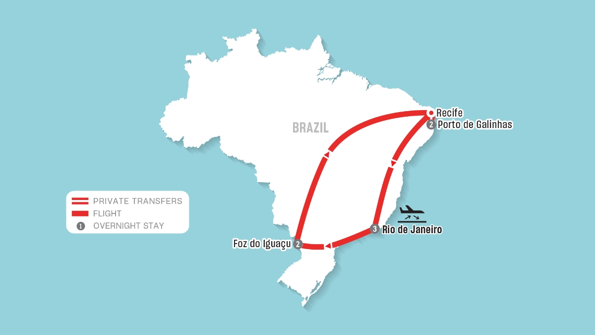 - Domestic flights from Rio de Janeiro to Foz do Iguaçu, Foz do Iguaçu to Recife and Recife to Rio de Janeiro.