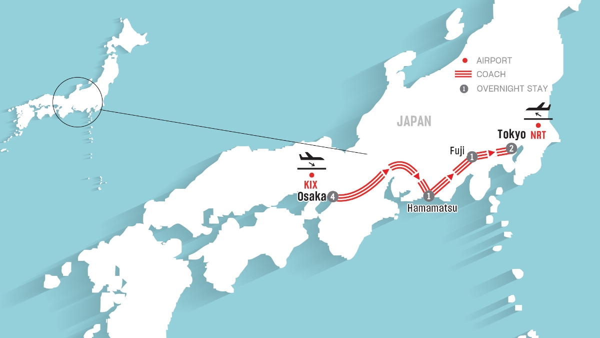- 8 nights of Superior accommodation with meal inclusions according to itinerary (4 nights in Osaka, 1 night in Hamamatsu, 1 night in Fuji, 2 nights in Tokyo)