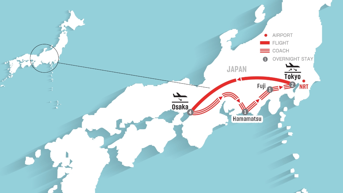 - 8 nights of Superior accommodation with meal inclusions according to itinerary (4 nights in Osaka, 1 night in Hamamatsu, 1 night in Fuji, 2 nights in Tokyo)