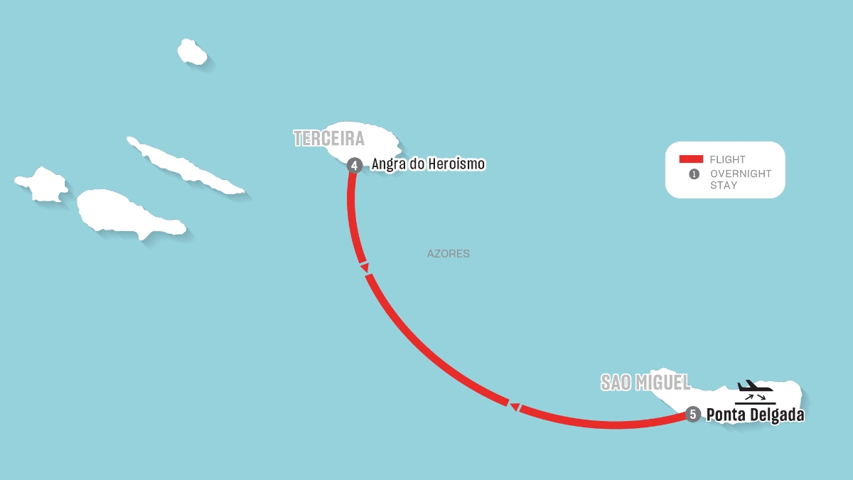 - Round-trip airport transfers in Ponta Delgada on arrival/departure and for domestic flight to Terceira