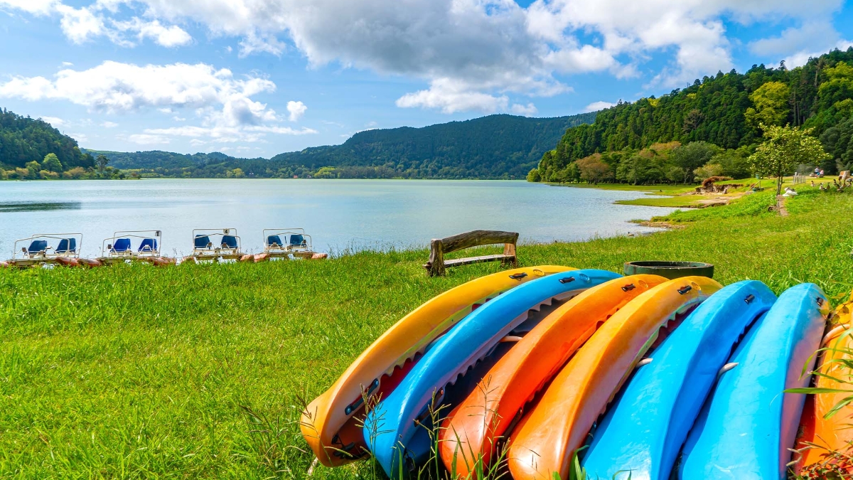 Cycle along the rim of the Sete Cidades crater, passing through forest trails and scenic viewpoints. Then switch gears with a paddle boat ride across the twin lakes—one blue, one green—surrounded by volcanic cliffs and lush vegetation.
