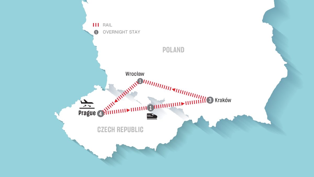 - 1 night of accommodation overnight train in a Deluxe cabin: Prague – Kraków – Prague, including breakfast at the hotel in Kraków