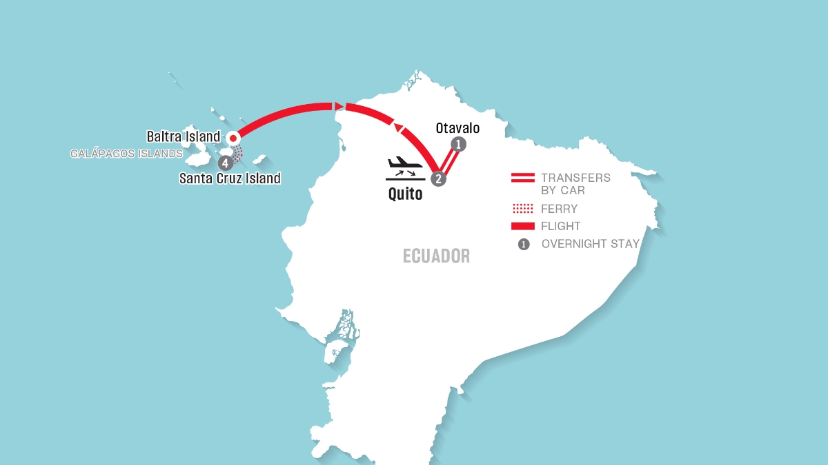 - Round-trip domestic flight in economy class between Quito and Baltra Island