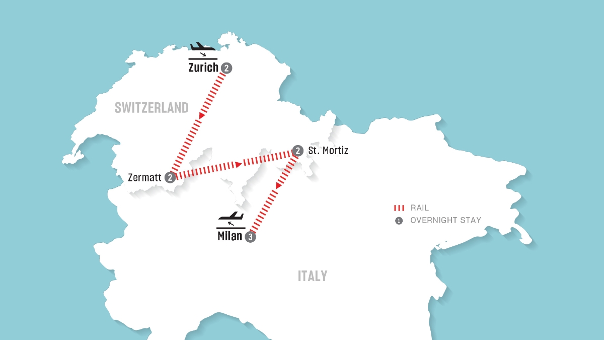 Experience the beauty and charm of the Alps and northern Italy. Enjoy the vibrant cities of Zurich and Milan, relax in the mountain resorts of Zermatt and St. Moritz, and soak up stunning alpine landscapes along the way.