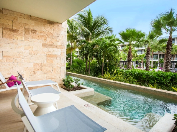 Suite junior Xcelerate avec très grand lit, vue tropicale et accès direct à la piscine