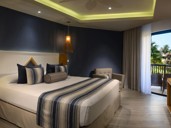 Terrasse avec accès direct à la piscine, Climatisation et ventilateur de plafond, Télévision, Téléphone, Coffre-fort dans la chambre, Minibar, Cafetière, Décor de chambre spécial et trousse de bienvenue comprenant des fruits, une bouteille de vin mousseux et des chocolats, Souper romantique pour deux (une fois par séjour), Massage de 25 minutes pour couple.