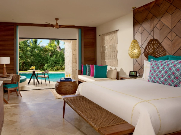Suite junior avec vue tropicale, accès direct à la piscine et très grand lit