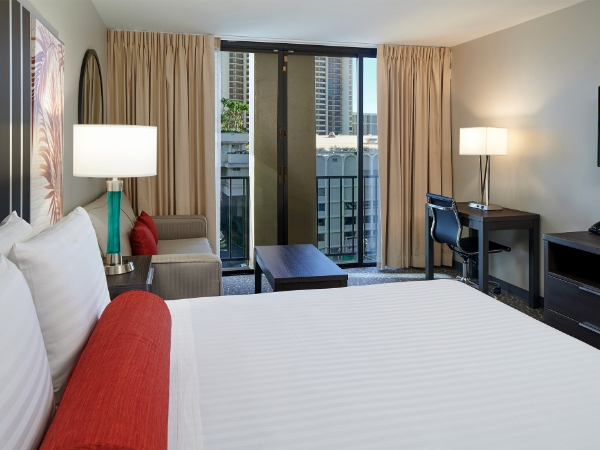 L’Aqua Palms Waikiki d’Honolulu est un hôtel haut de gamme animé idéalement situé à un bloc de la plage, à l’entrée de Waikiki et à quelques pas de l’Ala Moana Center, du Duke Kahanamoku Lagoon et du Fort DeRussy.