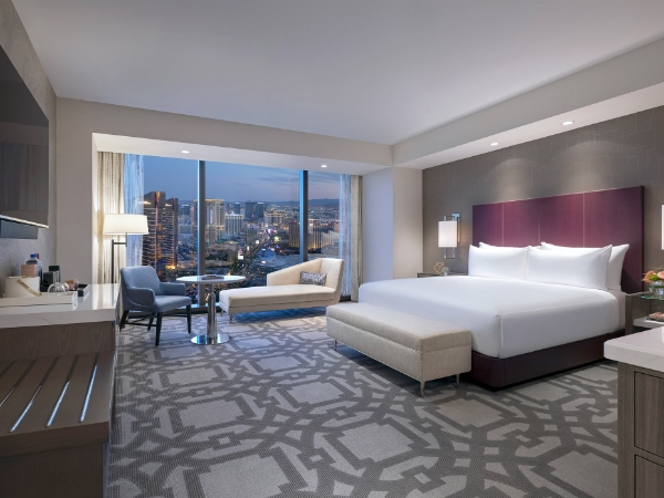 Chambre supérieure avec vue sur le Strip et très grand lit