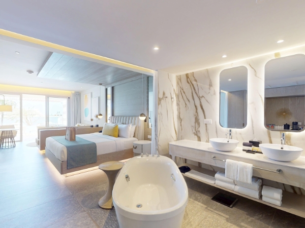Applicable aux catégories de chambres suivantes : Suite junior Platinum, suite junior Platinum avec accès direct à la piscine et Villa sur l’eau avec piscine à débordement