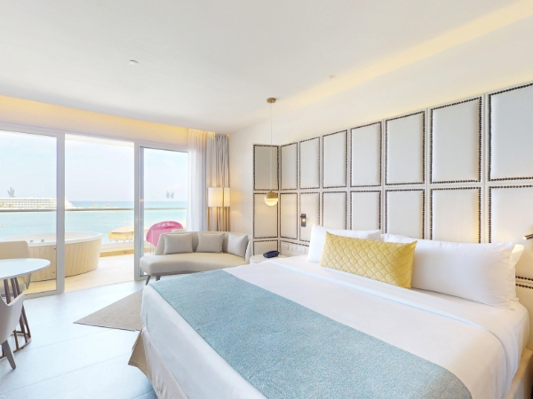 Balcon avec baignoire à remous, Climatisation, Télévision, Coffre-fort dans la chambre, Fer à repasser, Minibar, Cafetière, Cadeau de bienvenue dans la chambre, Serviettes de plage dans la chambre, Le service aux chambres est gratuit de 8 h à 22 h (des frais de service s’appliquent après 22 h).
