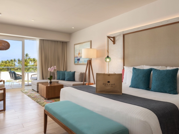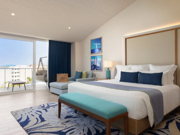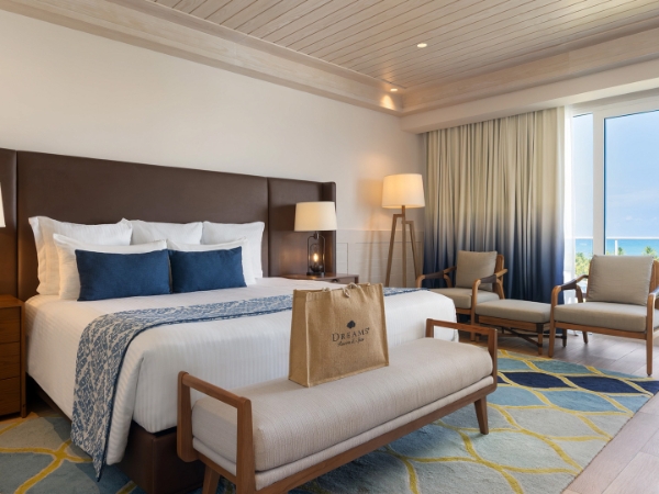 Chambre de luxe Preferred Club avec très grand lit face à la mer