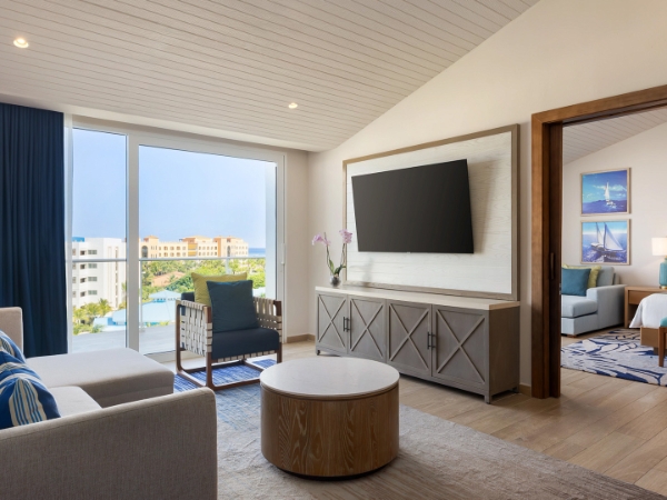 Suite principale Preferred Club avec très grand lit et vue sur la mer