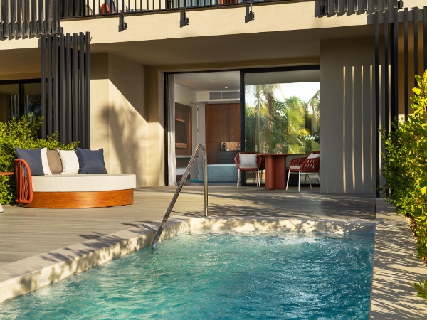 Chambre de luxe avec accès direct à la piscine et très grand lit