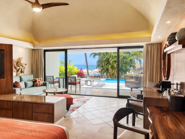 Suite Club Level avec très grand lit, vue sur la mer et accès direct à la piscine