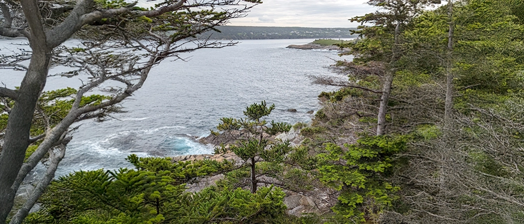 Après avoir regagné la terre ferme, nous avons pensé faire une petite randonnée le long du vaste sentier East Coast Trail. Nous avons parcouru environ la moitié du chemin avant de tomber sur un passage étroit juste contre la falaise, ce qui a été un « non » catégorique pour moi.