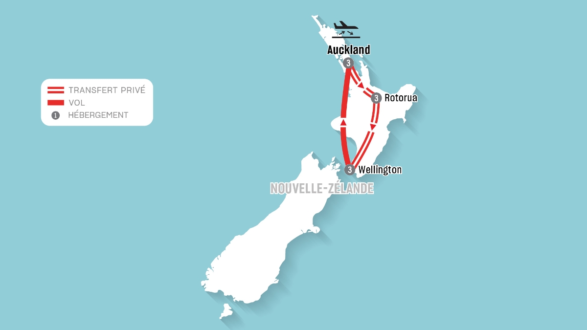 Après le petit-déjeuner à l’hôtel, vous prendrez un transfert privé vers l’aéroport de Wellington pour votre vol vers Auckland.