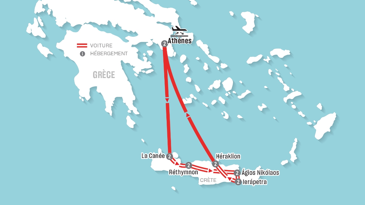 Découvrez le meilleur de la Crète à votre rythme grâce à cet itinéraire panoramique en voiture. Des charmantes villes vénitiennes aux plages magnifiques, en passant par les sites historiques et les joyaux cachés, chaque jour est une nouvelle aventure. Explorez, détendez-vous et plongez-vous dans la beauté et la culture de la plus grande île de Grèce.