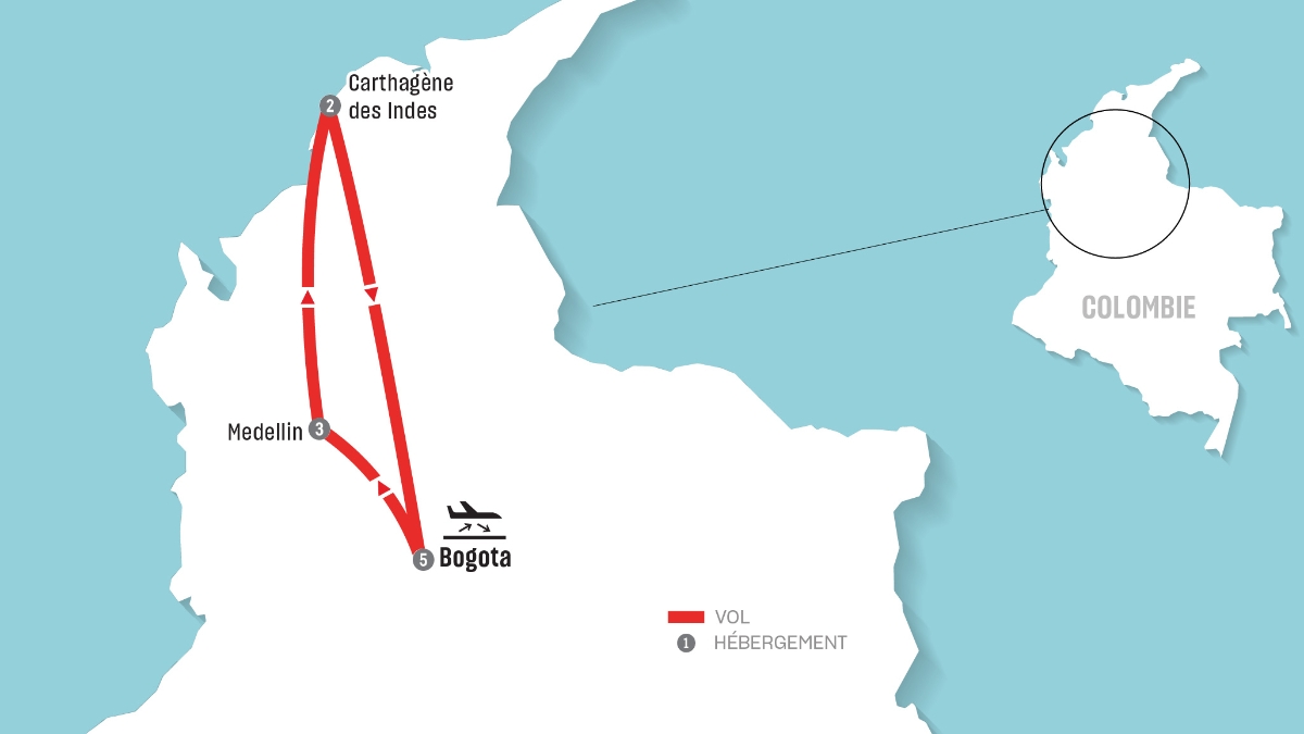 - Vols de Bogotá à Medellín, Medellín à Cartagena de Indias et Cartagena de Indias à Bogotá