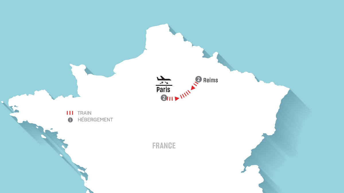 Après le petit-déjeuner, vous prendrez le train de Reims au centre-ville de Paris. À votre arrivée, une voiture privée vous amènera à l’aéroport pour votre vol de retour