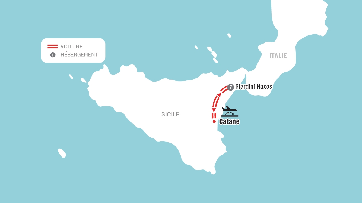 À votre arrivée à l’aéroport de Catane rencontrez votre représentant local. Prenez un transfert jusqu’à votre hôtel à Giardini Naxos pour vous enregistrer. Profitez du reste de la journée à votre guise en Sicile.