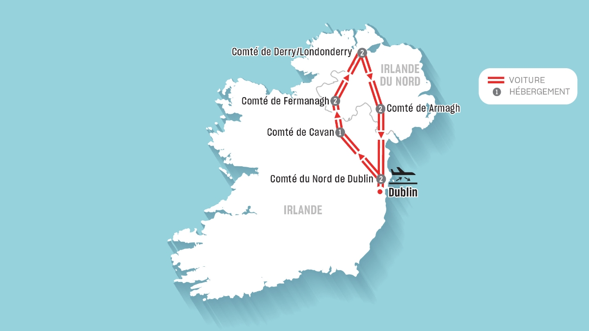 Cette escapade routière est conçue pour les voyageurs en quête d’une expérience un peu différente! En logeant dans des hôtels 3 étoiles et 4 étoiles triés sur le volet et de charmantes maisons d’hôtes, vous découvrirez des paysages ponctués de lacs, des cités fortifiées, d’anciennes cathédrales et vivrez la magie des histoires. Explorez les Hidden Heartlands du nord de l’Irlande et ses comtés, à un rythme détendu, où chaque tournant réserve une expérience spontanée et pleine de charme.