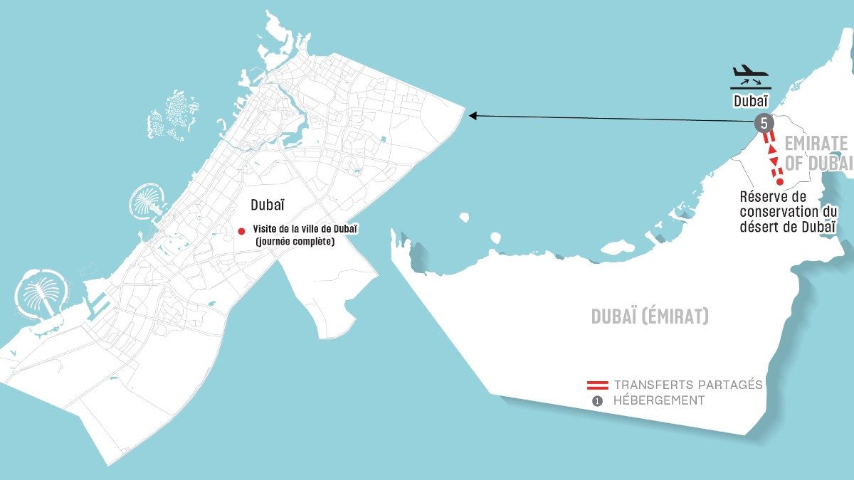 - 5 nuits d’hébergement dans la catégorie sélectionnée (5 nuits à Dubaï)