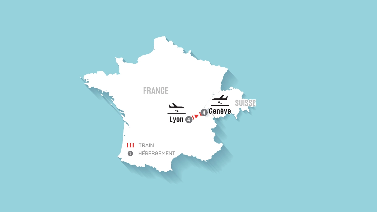 • Vol pour l’aller à destination de Lyon et vol de retour depuis Genève