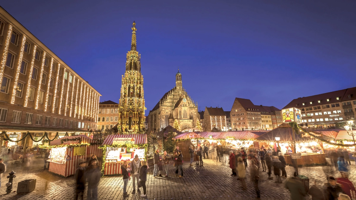 Après le petit-déjeuner, vous vous rendrez à la gare pour prendre le train en direction de Nuremberg. Tombez sous le charme de l’ambiance festive de la ville. Le Christkindlesmarkt de Nuremberg est l’un des marchés de Noël les plus célèbres et les plus traditionnels d’Allemagne. Il se tient sur le Hauptmarkt, la place centrale de la vieille ville de Nuremberg, et compte plus de 180 stands en bois. Découvrez l’histoire de la ville et de la place du marché grâce à cette visite à pied et dégustez du vin chaud et des pâtisseries à base de pain d’épices.