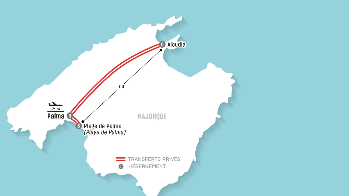 - Transferts privés : Aéroport à l’hôtel de Palma, hôtel de Palma à l’hôtel d’Alcúdia et hôtel d’Alcúdia à l’aéroport