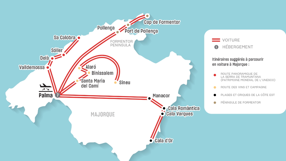 Itinéraires suggérés à parcourir en voiture à Majorque :