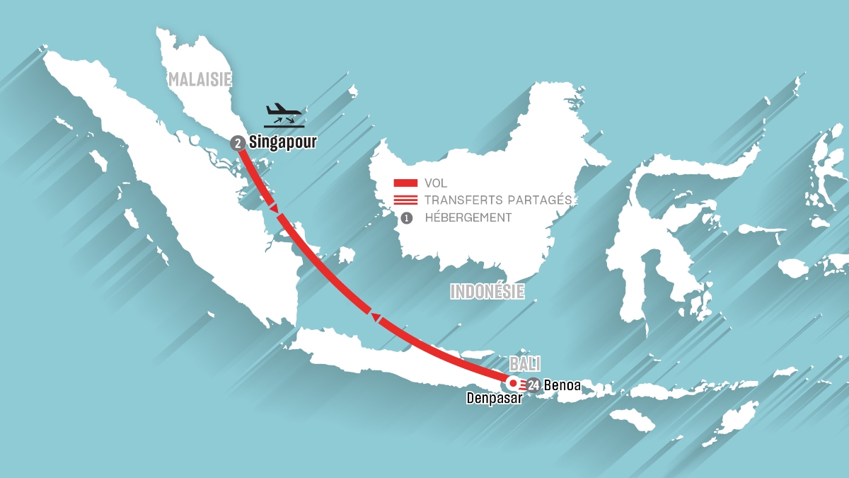 - Transferts partagés pour toutes les visites touristiques à Bali et Singapour
