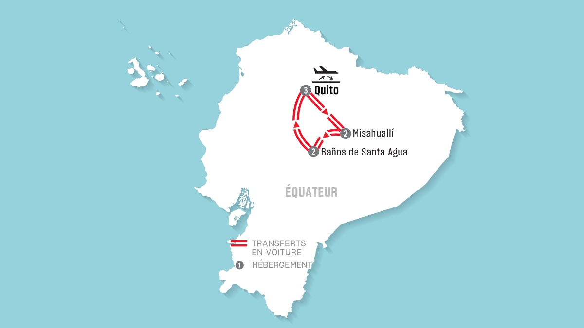 Embarquez pour un voyage de 8 jours et 7 nuits qui vous fera découvrir la beauté et les contrastes de l’Équateur, depuis la capitale historique de Quito jusqu’aux vastes hauts plateaux d’Antisana, puis aux contreforts luxuriants de l’Amazonie entourant Misahuallí, pour finir par les paysages thermaux pittoresques de Baños de Agua Santa. Cet itinéraire relie quatre régions distinctes, chacune offrant une atmosphère, un caractère culturel et des paysages qui lui sont propres. Ces quatre destinations vous permettent de parcourir des montagnes, des forêts et des vallées fluviales en Équateur, vous offrant une expérience équilibrée, riche en découvertes, en transitions pittoresques et en moments inoubliables tout au long du parcours.
