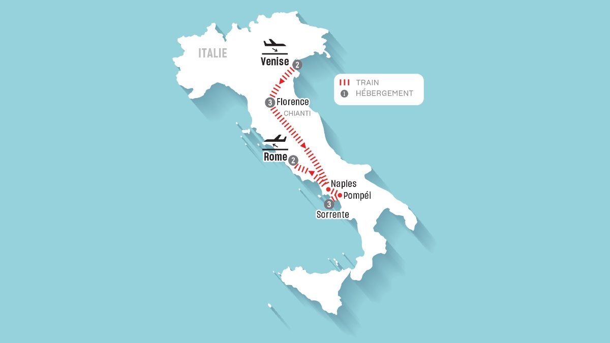La vie est courte, autant savourer chaque instant avec ce circuit guidé inoubliable de 12 jours en train. Vous découvrirez les plus beaux joyaux de l’Italie, de Venise à la Toscane, en passant par la côte amalfitaine et Rome.