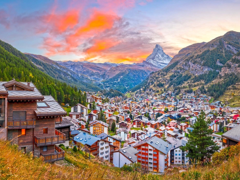 La Suisse nichée au cœur de l’Europe est un pays de montagnes pittoresques d’une beauté incomparable. Les villages alpins avoisinant les lacs immaculés sont bordés par les hauts sommets enneigés des Alpes. Les amateurs de plein air ont hâte à l’hiver pour dévaler parmi les meilleures pistes de ski au monde et profitent de l’été pour flâner dans les champs romantiques. Profitez tant des villages chaleureux que des villes cosmopolites, tout en écoutant le son de la musique.