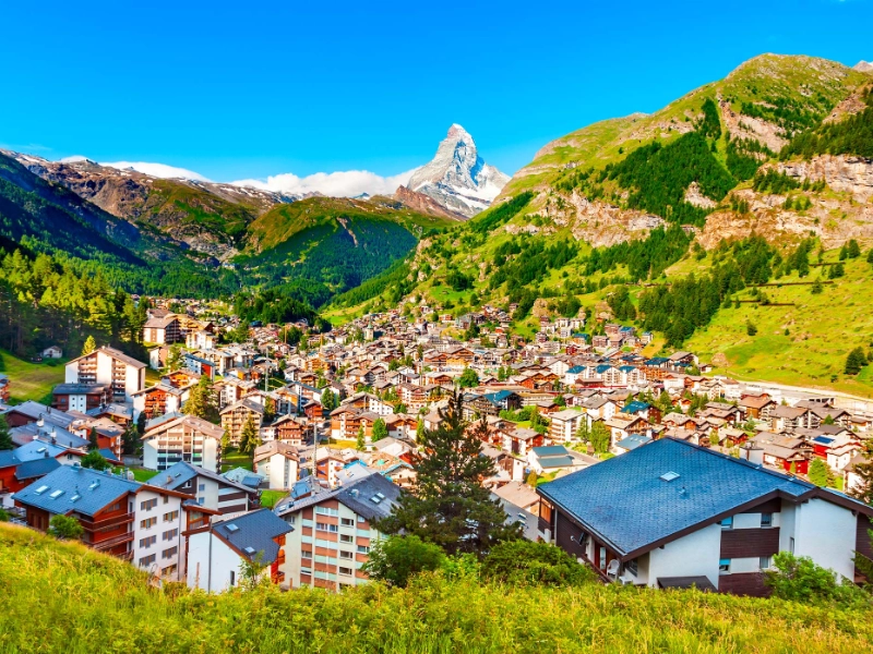 Les circuits en Suisse comprennent les vols aller-retour, l’hébergement et le petit-déjeuner quotidien. Les transports tels que les transferts en train et des activités peuvent également être inclus et varient selon l’itinéraire.